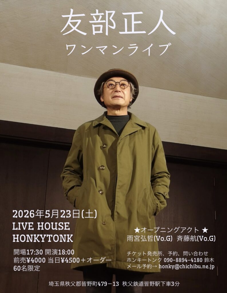 友部正人ライブのオープニングアクトとして歌います。